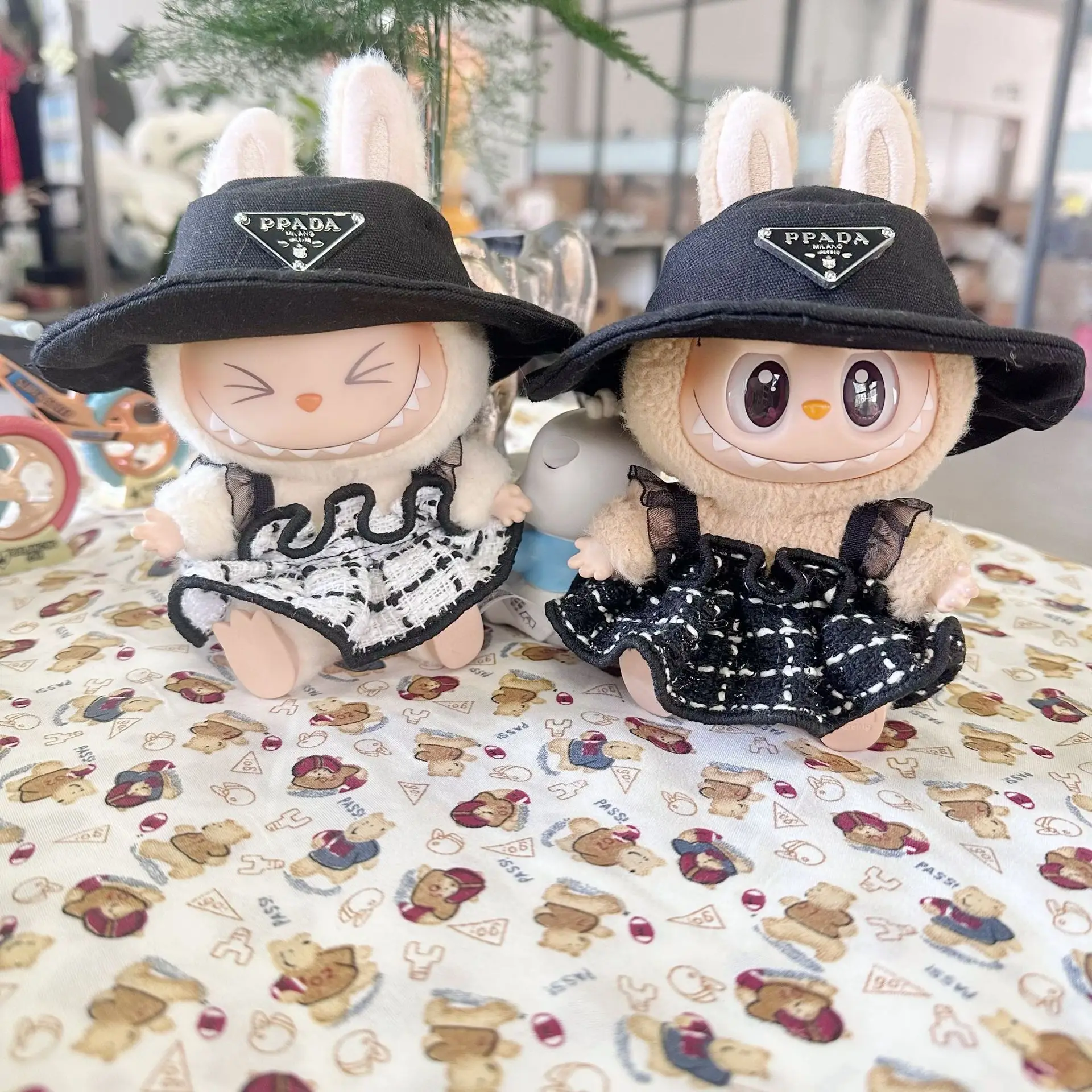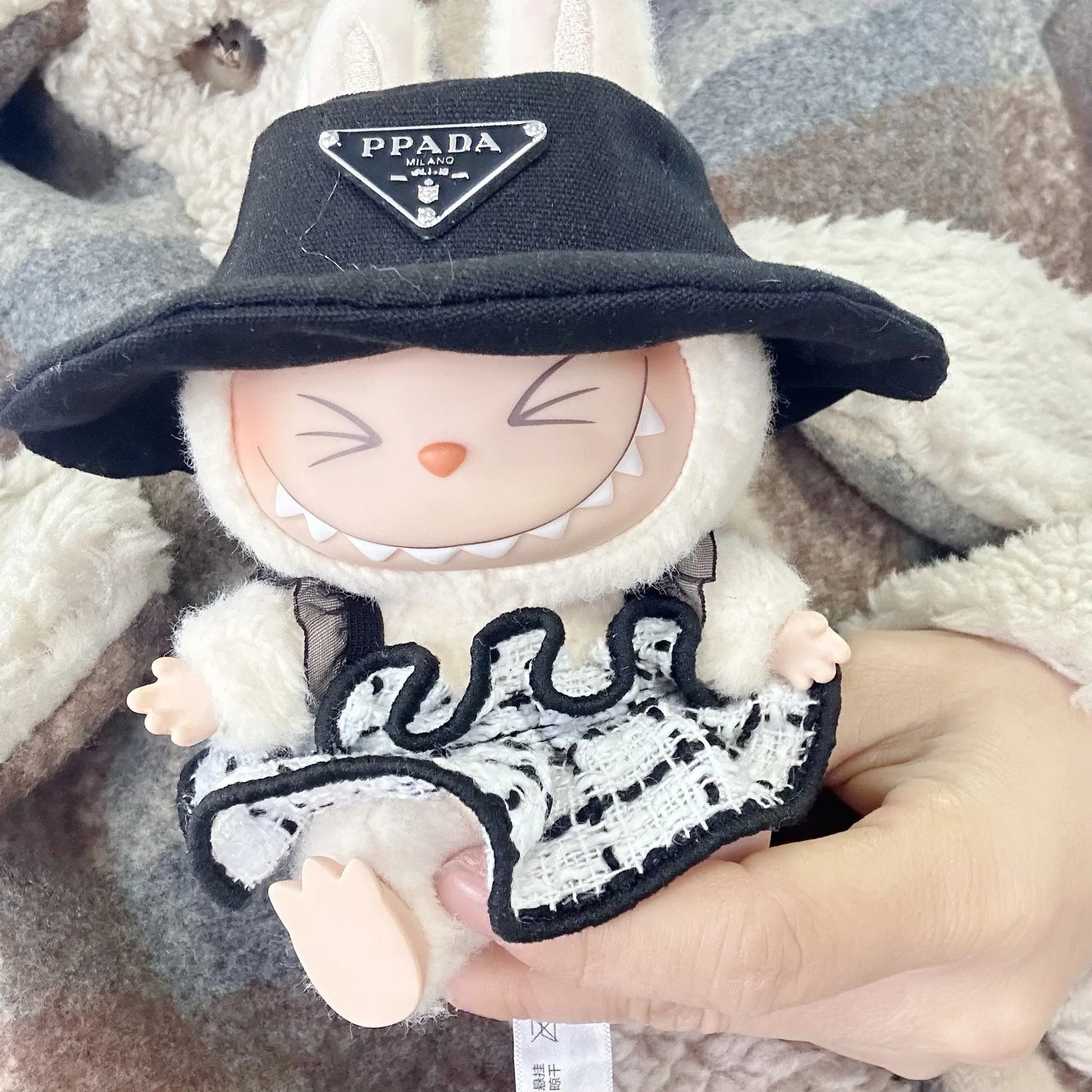 For 17cm labubu/mokoko clothes outfit labubu sitting party v1 v2 baby clothes kpop exo bts black and white fragrant skirt set